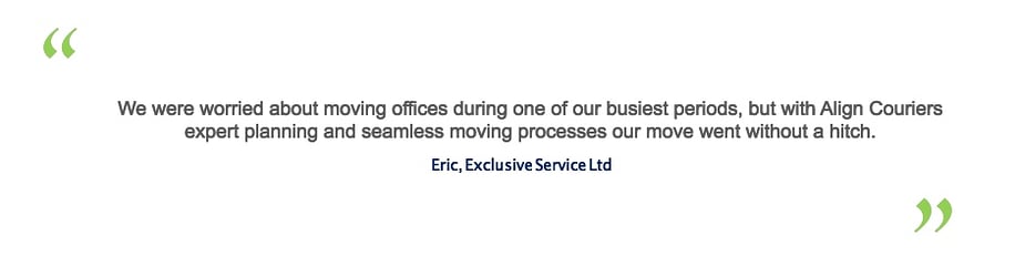 Align Couriers has extensive experience in relocating offices. Our professional approach, skills and experience in this specialist field ensures that you are up and running quickly and that the transition from one location to the next is as smooth as possible.